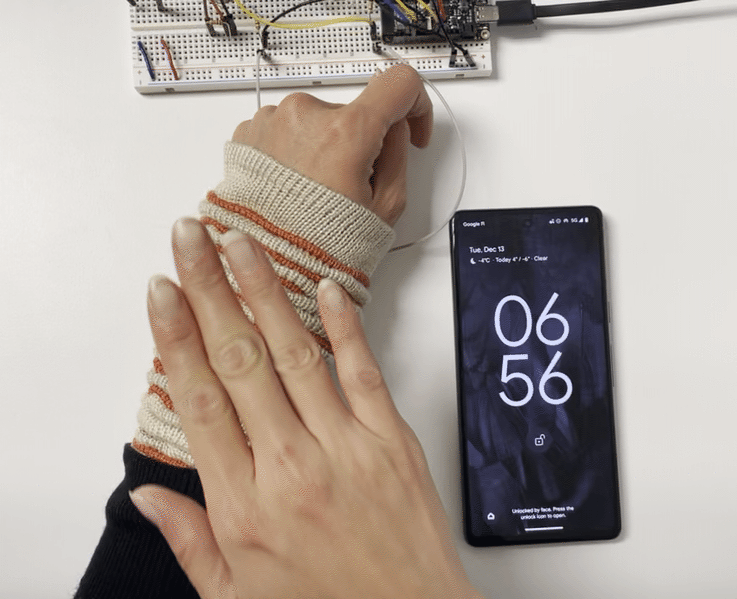 Users can send predefined messages to recipients through personalized gestures, such as a single tap, double tap, left swipe, right swipe, etc. This is achieved through the use of capacitive sensing conductive fiber.